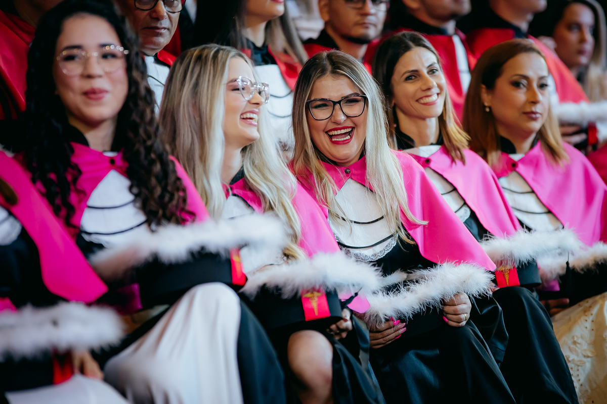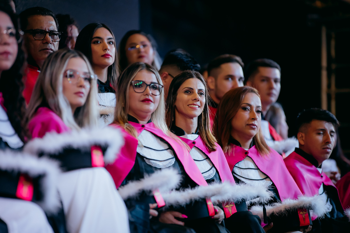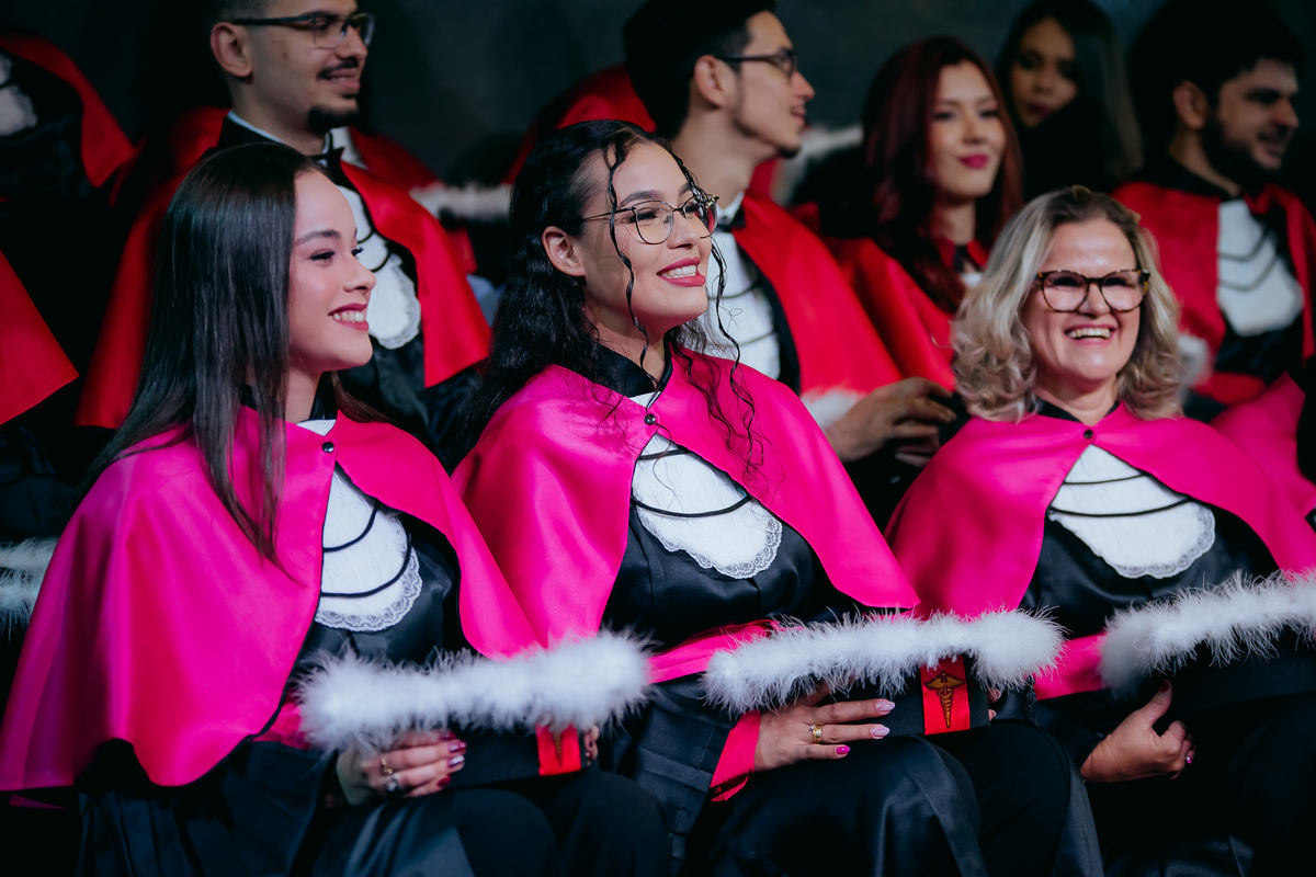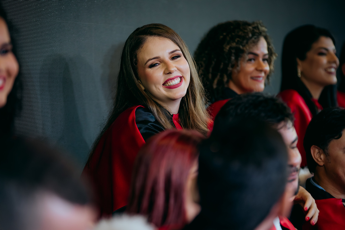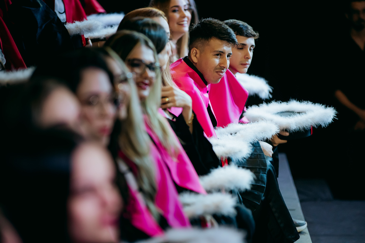 Minha fotografia na colação de grau é inspirada no fotojornalismo, capturando cada momento de forma natural e autêntica. Antes da cerimônia, realizo um ensaio rápido e prático do formando, individualmente e com a família, aproveitando a decoração do ambiente. Durante o evento, meu olhar está atento às emoções genuínas, da entrada inicial até à posse do canudo. Meu objetivo é proporcionar um registro atemporal e emocionante, permitindo que o formando reviva esse dia especial através de imagens que refletem toda a sua essência e conquista.