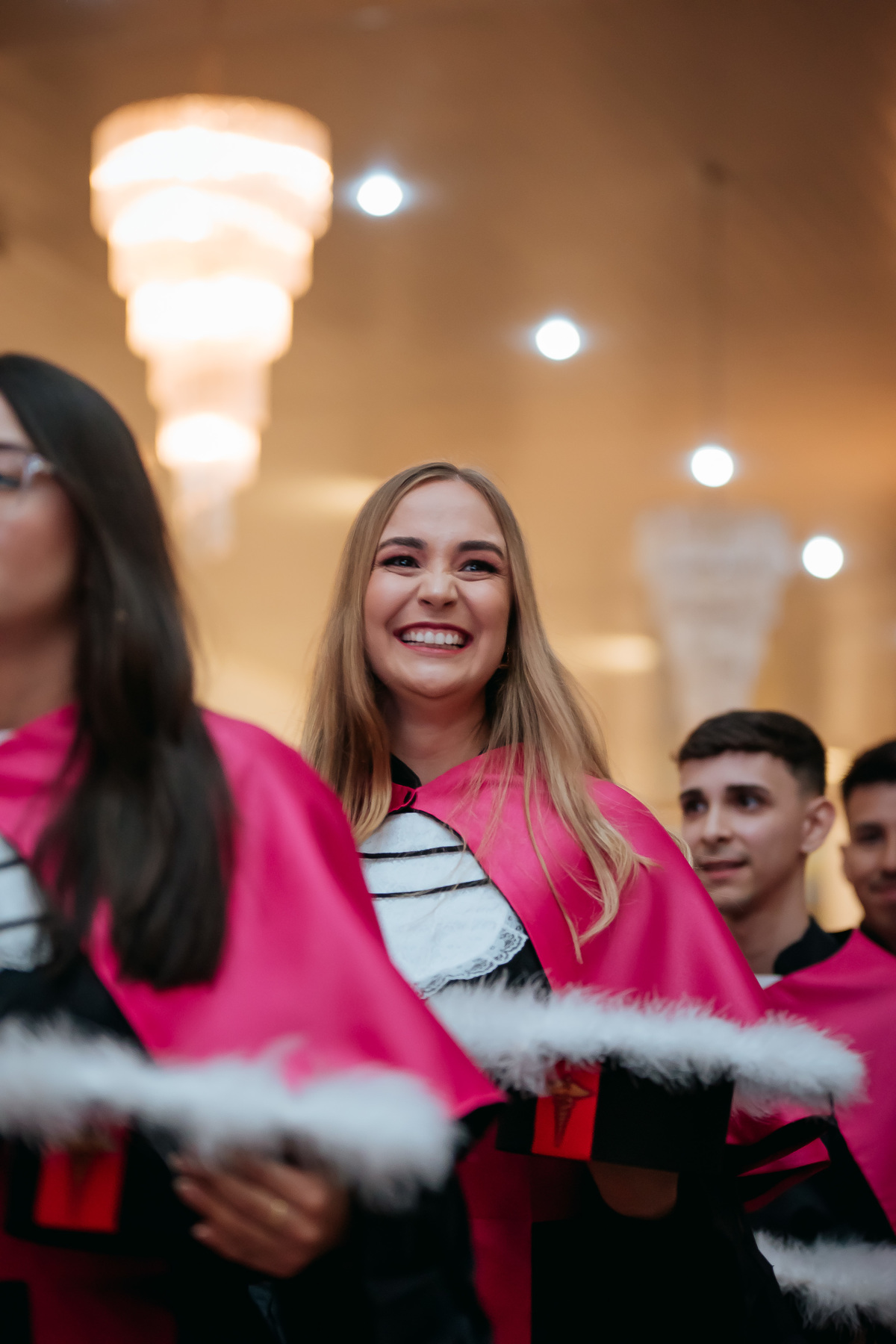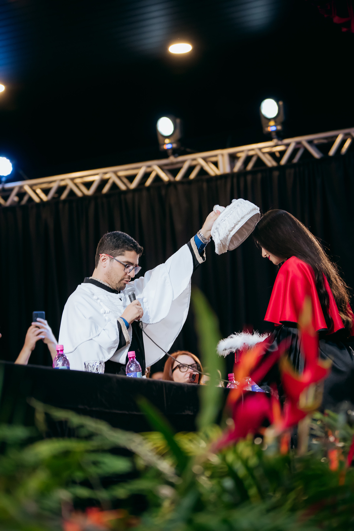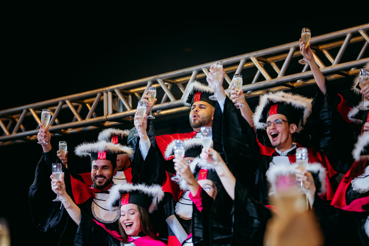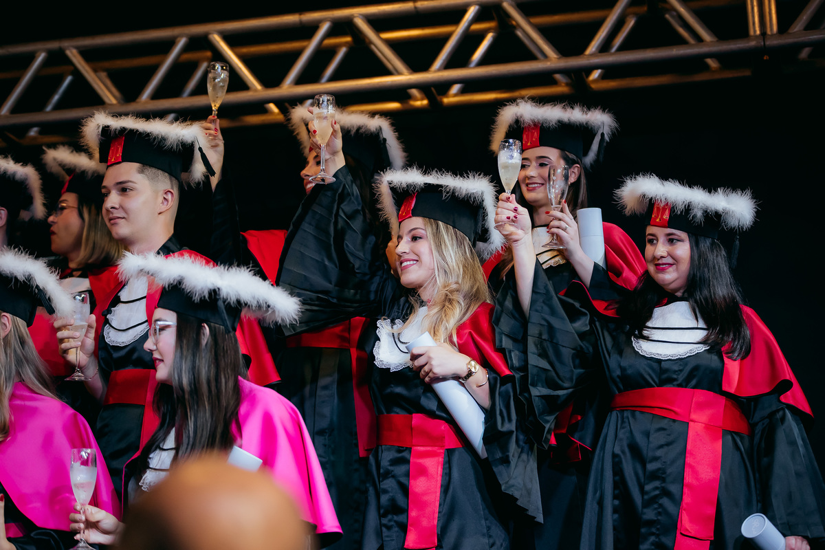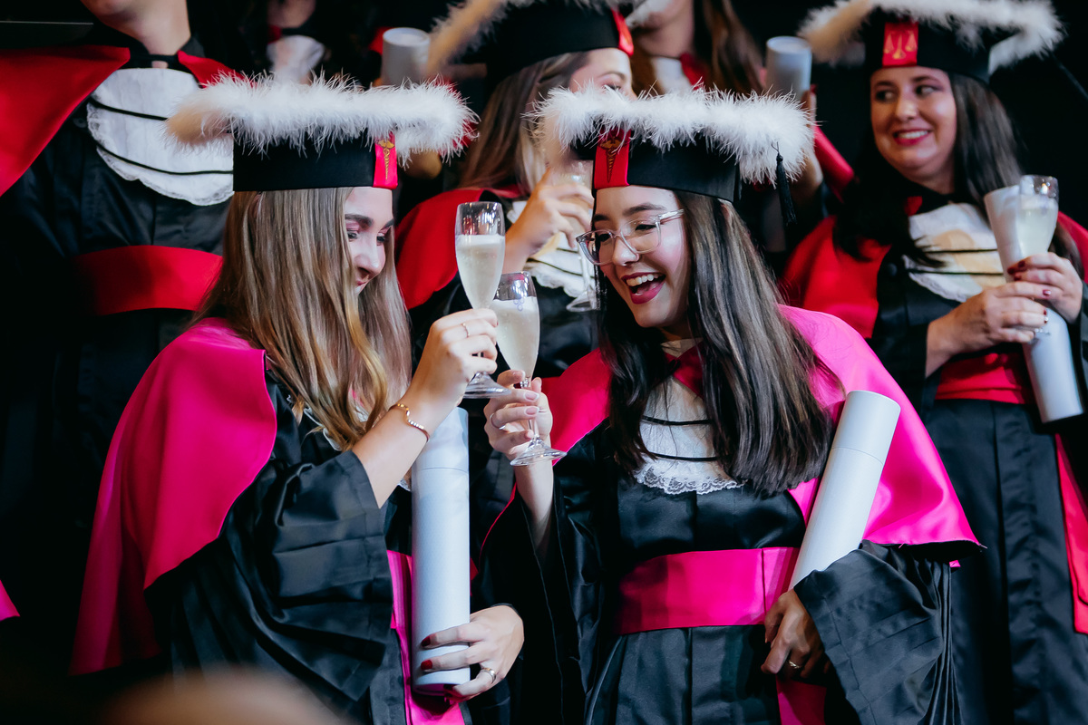 Minha fotografia na colação de grau é inspirada no fotojornalismo, capturando cada momento de forma natural e autêntica. Antes da cerimônia, realizo um ensaio rápido e prático do formando, individualmente e com a família, aproveitando a decoração do ambiente. Durante o evento, meu olhar está atento às emoções genuínas, da entrada inicial até à posse do canudo. Meu objetivo é proporcionar um registro atemporal e emocionante, permitindo que o formando reviva esse dia especial através de imagens que refletem toda a sua essência e conquista.
