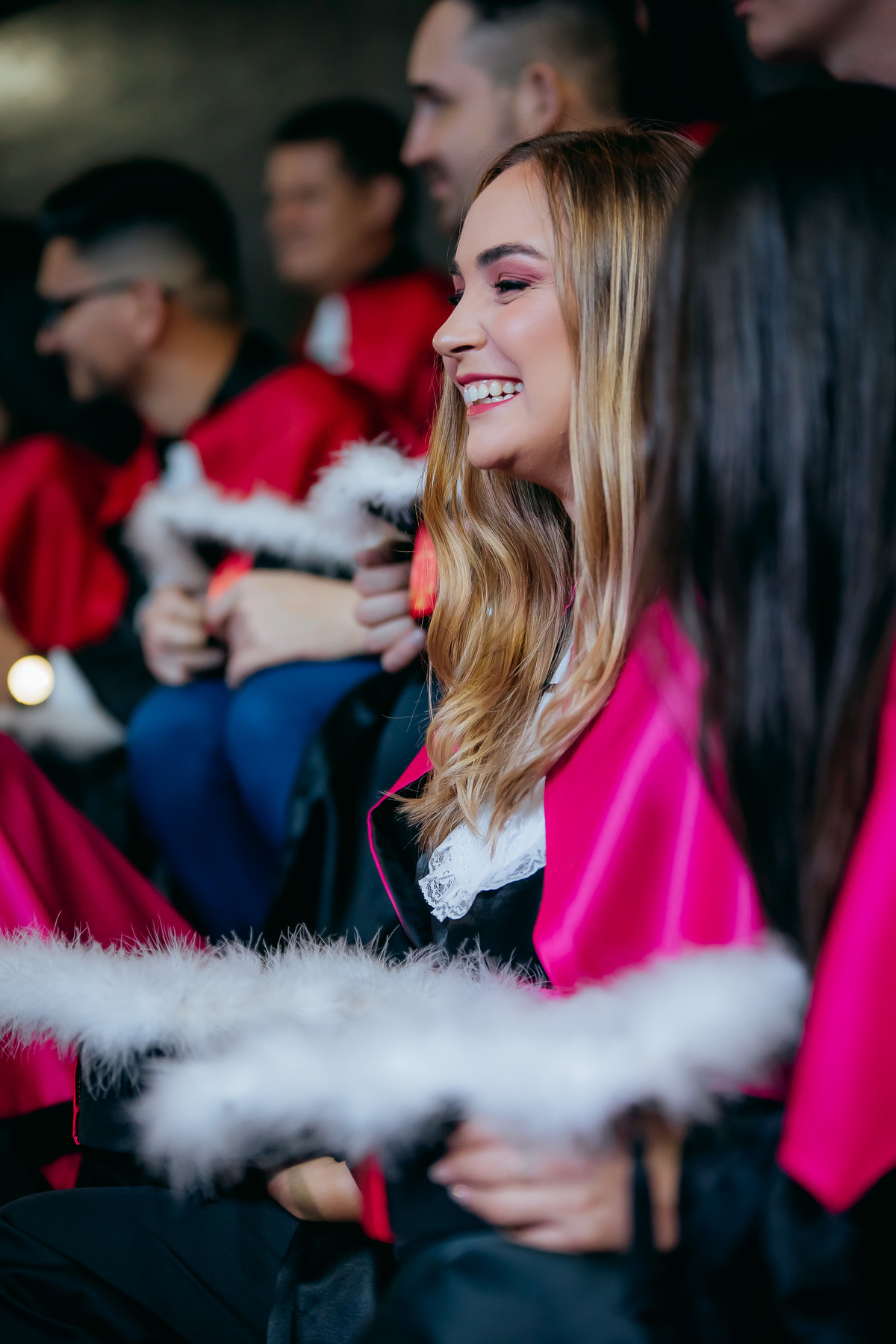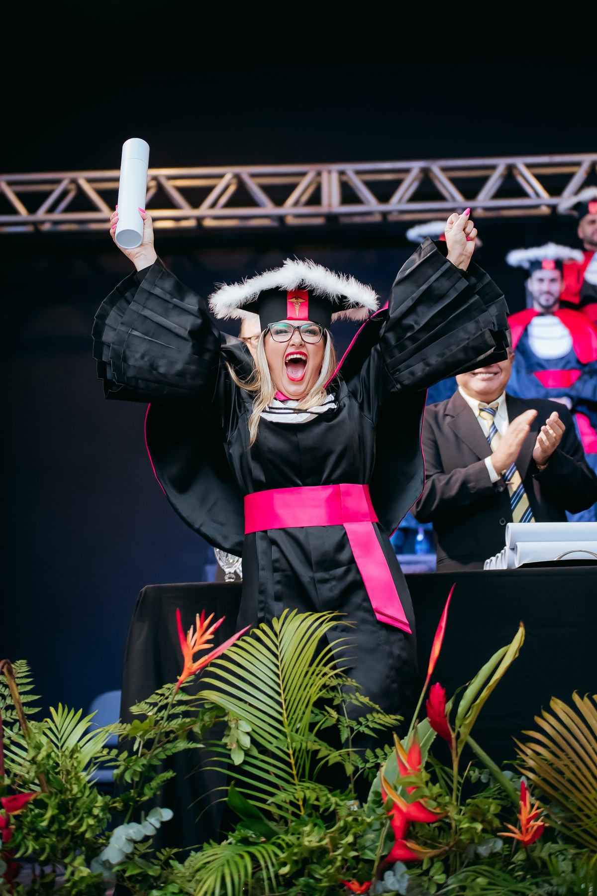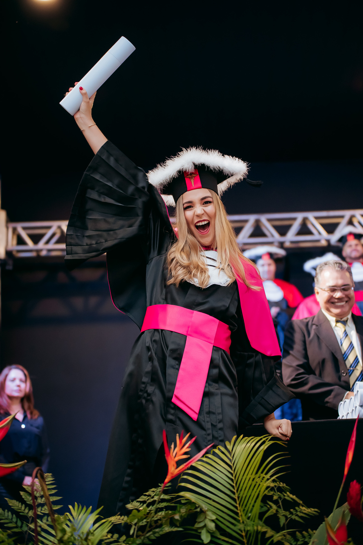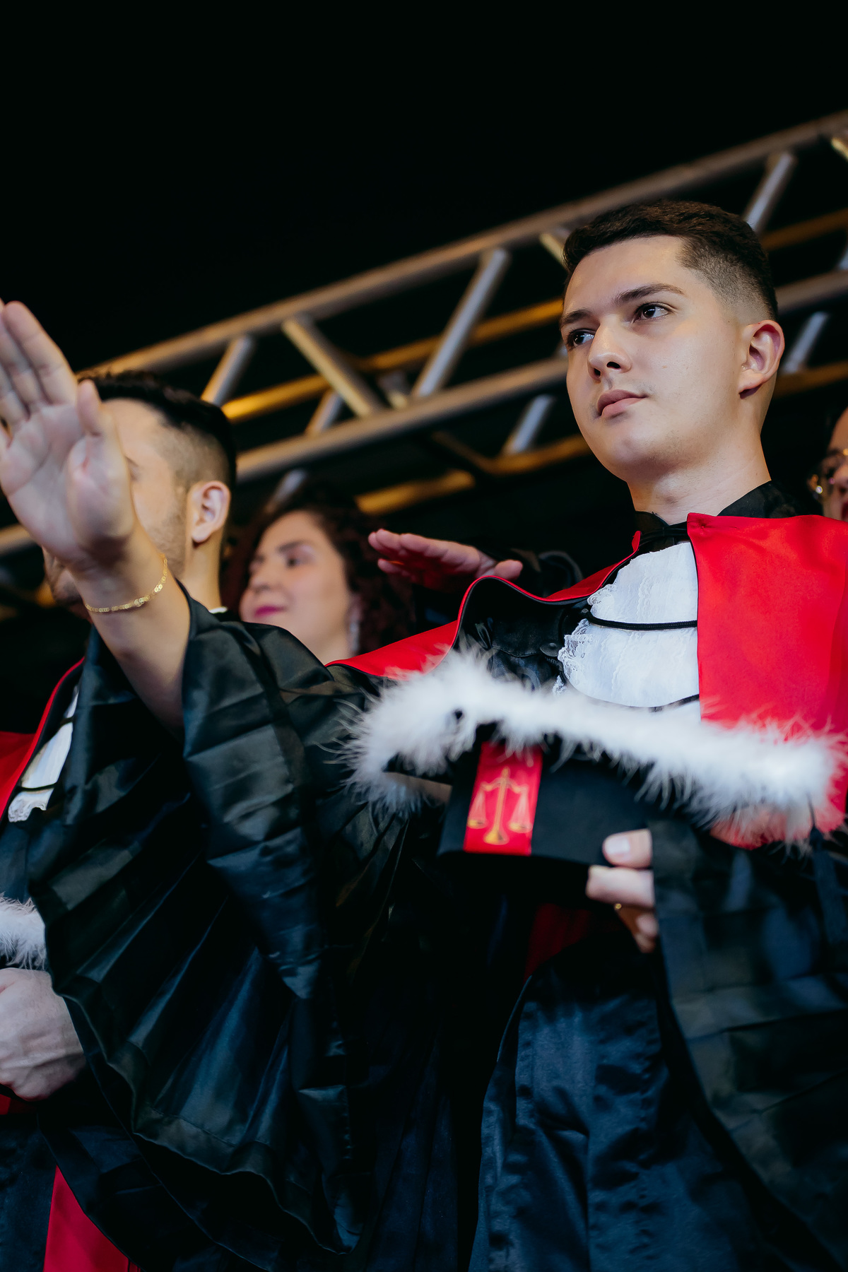 Minha fotografia na colação de grau é inspirada no fotojornalismo, capturando cada momento de forma natural e autêntica. Antes da cerimônia, realizo um ensaio rápido e prático do formando, individualmente e com a família, aproveitando a decoração do ambiente. Durante o evento, meu olhar está atento às emoções genuínas, da entrada inicial até à posse do canudo. Meu objetivo é proporcionar um registro atemporal e emocionante, permitindo que o formando reviva esse dia especial através de imagens que refletem toda a sua essência e conquista.